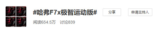 在传播层面,发布会经由微信KOL的扩散传播,触达了更广泛的消费者圈层。在微博端同样引发热议,#哈弗F7x极智运动版#话题阅读量达654.5万,讨论839。至此,为哈弗F7x做了一个完美收官。