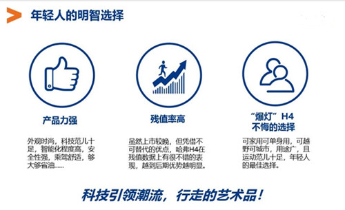 一款真正的好车,一定要用户说好。报告显示,根据某汽车网站网友真实数据统计,哈弗H4的综合评分高于同级别车型综合评分5.82%。而这也确保了哈弗H4的高残值率。该报告的最后一部分显示,“哈弗H4值得年轻人爆灯”,称其是年轻人的明智选择。在产品力、残值率、用途等多维度,综合评价其为“科技引领潮流,行走的艺术品!”