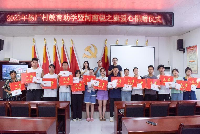 在这个充满爱与希望的金秋开学季,河南锐之旗网络科技有限公司携手河南省内爱心企业共同发起【锐爱公益行·圆梦计划】公益慈善捐款活动,来到河南省新乡市杨厂村,以实际行动助力贫困大学生完成学业。
