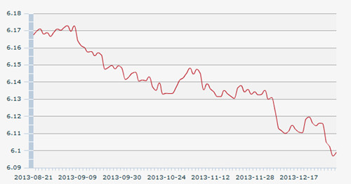 中新网1月2日电 据央行网站消息,中国人民银行授权中国外汇交易中心公布,2014年1月2日银行间外汇市场人民币汇率中间价为:1美元对人民币6.0990元,1欧元对人民币8.3937元,100日元对人民币5.7827元,1港元对人民币0.78658元,1英镑对人民币10.1118元,1澳大利亚元对人民币5.4212元,1加拿大元对人民币5.7321元,人民币1元对0.53976林吉特,人民币1元对5.4134俄罗斯卢布。