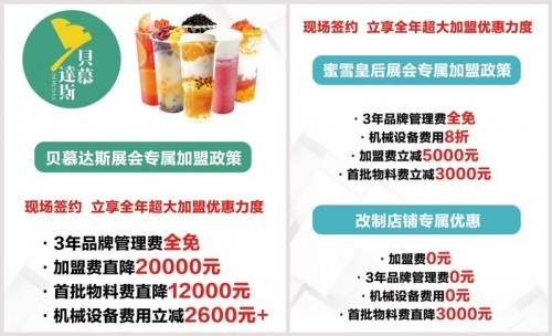 在本次加盟展上,贝慕达斯和蜜雪皇后分别为大家准备了超大惊喜!