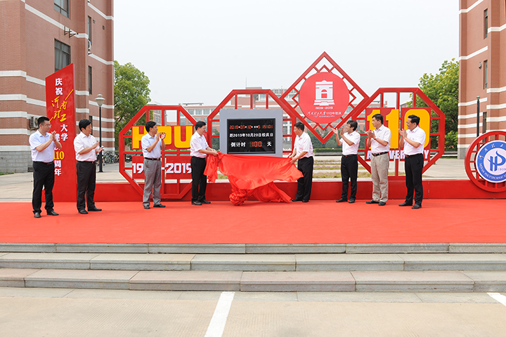 7月12日下午,我校在南校区世纪广场南侧举行110周年校庆100天倒计时纪念牌揭牌仪式,并在力行楼学术报告厅召开校庆100天倒计时筹备工作动员会。校领导邹友峰、杨小林、安士伟、陈自录、赵俊伟、翟传森、解伟、赵同谦出席揭牌仪式和动员大会。