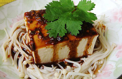 浇汁针菇冷豆腐的做法
