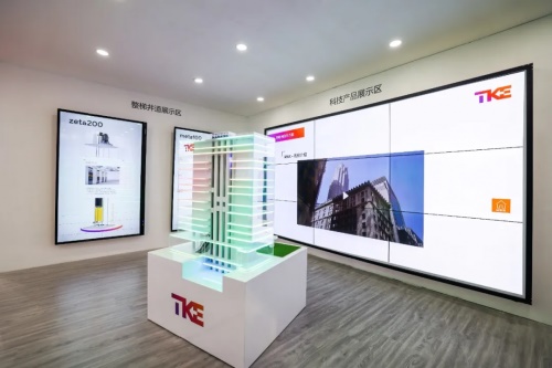 为了提升访客参观体验,蒂升电梯的四个主题展区——TKE城市展示区、公司介绍展示区、整梯井道展示区和科技产品展示区,通过科技感十足的互动式触摸屏形式,生动形象地展示了公司百年发展历程、覆盖各个细分市场的丰富产品、数字化解决方案以及引领行业的先进科技。