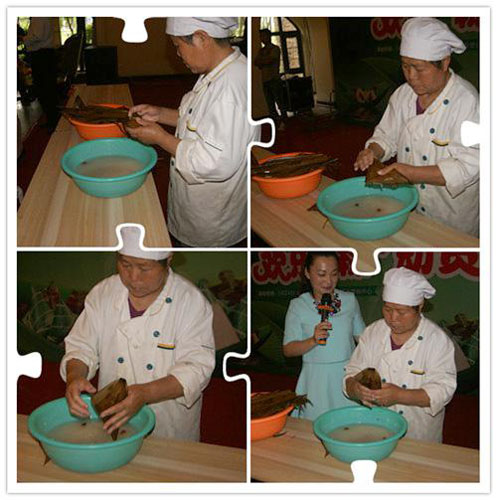 专业的老师演示包粽子