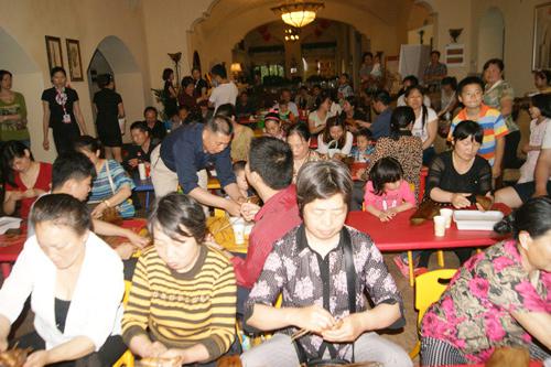 现场参与者正在集体包粽子
