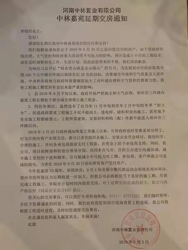 由于环境治理、大气管控等因素,造成了5个月的工期延误。力争在9月30日前交付。