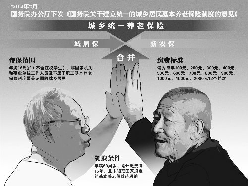 人社部、财政部近日联合印发了《城乡养老保险制度衔接暂行办法》。该《办法》将于2014年7月1日正式施行。国务院还正式公布了《建立统一的城乡居民基本养老保险制度的意见》(以下简称《意见》)。2015年末,在全国基本实现新农保和城居保制度合并实施,并与职工基本养老保险制度相衔接。