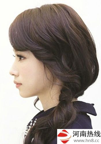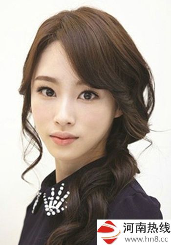 智秀发型示范 编发会使发型富于变化,更有新意,智秀这款侧边编发好看又简单,三股辫松散的编到发尾再用橡皮筋固定就搞定,十分实用。