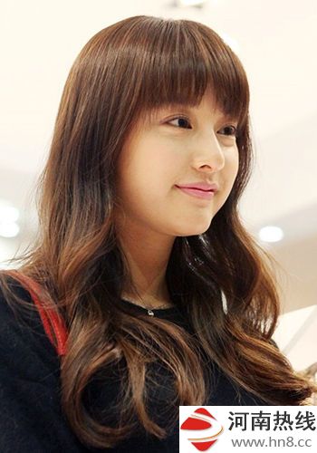 金智媛发型示范 直发虽说是容易打理可是造型感远不够卷发看起来更好,而且卷发能增加女人味,展现难以忘怀的柔美气息,像金智媛这款齐刘海卷发就非常自然,齐刘海有助于修饰过高的额头,还有减龄作用,甜美清秀萝莉范。