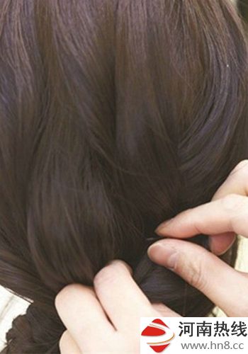 STEP 6 STEP 6:将编好的小辫子圈住橡皮筋,用发夹固定在里面。