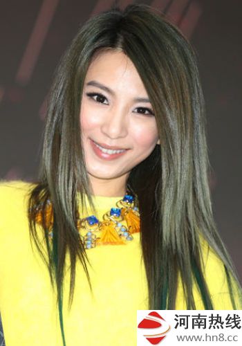 Hebe发型示范 染发可以为一成不变的发型带来生机,厌倦黑发的mm们可以像Hebe那样在发尾挑染绿色,保证吸引眼球。