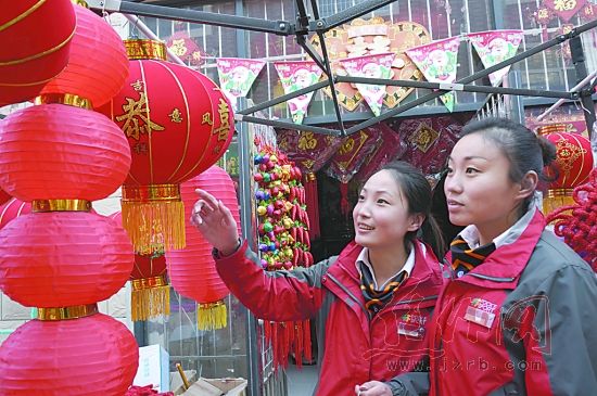 春节临近,象征着吉祥喜庆的大红灯笼、中国结等装饰品成了市民选购的新宠。1月5日,记者在新山阳商城看到,很多市民已迫不及待地选购各自喜爱的灯笼,许多店铺前挂起的红灯笼,把新山阳商城装扮得年味十足。