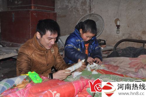 9月中旬,中秋节临近,到处洋溢着节日的气氛。而对于家住杞县宗店乡尹窑村6岁的宋成成一家来说,这个节日却没有欢笑。3年前,成成的母亲走失,留下他和哥哥与父亲相依为命。而父亲宋喜中是一个老实本分并且身患残疾的农民。就是这样一个家庭,不幸的事情却又一次降临:宋成成在玩耍时被木棒戳伤了左眼。慌忙中的宋喜中没有多想,只是带成成到村诊所进行了简单的治疗。但几天之后,成成眼部的伤愈发严重,宋喜中便带着他到县城一家眼病医院看病。宋喜中带来的钱很快就花光了,要继续治疗还需要一笔不小的费用。贫困的家庭加上巨额的医疗费用,让老实巴交的宋喜中一下子没了主意,一个人蹲在医院的走廊放声大哭。此时,刚做完眼部矫正手术正在走廊休息的刘赞看到眼前的景象,禁不住上前询问。刘赞说:“我当时没多想,就拿出2000元钱递给他。”刘赞出院时,将自己的手机号留给了宋喜中。