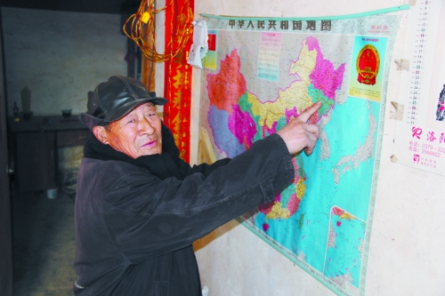 “我不识字,不过我知道他俩在哪儿上学。”老人一边说,一边快速准确地指出了孙子、孙女上学的方位。张小飞考上大学那一年,张书堂托人花5块钱买了张中国地图,贴在堂屋里。去年,孙女考上商丘工学院,堂屋里又多了张河南地图。