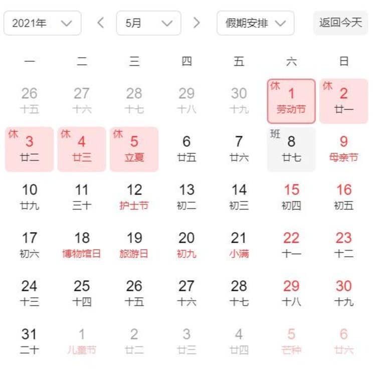 今年五一假期就做出了相应的调整,放假时间为5月1日至5日,共5天。