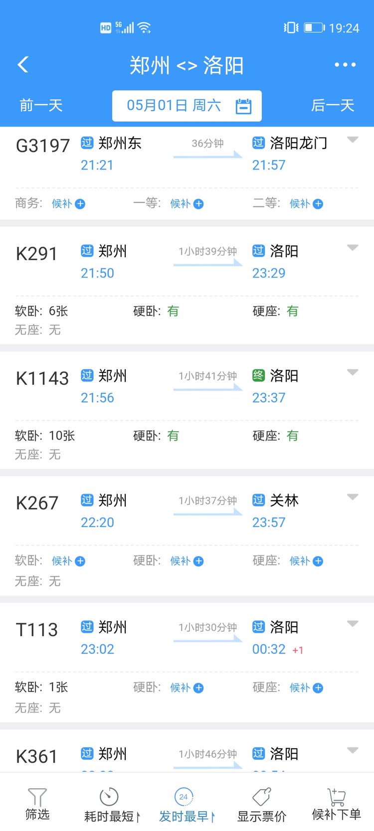 截至4月18日下午19:25分,河南省内方面,“五一”假期首日,郑州至洛阳124趟列车,仅剩两趟K开头的列车还有少量余票;郑州至商丘、南阳等多个城市车票也已所剩无几。