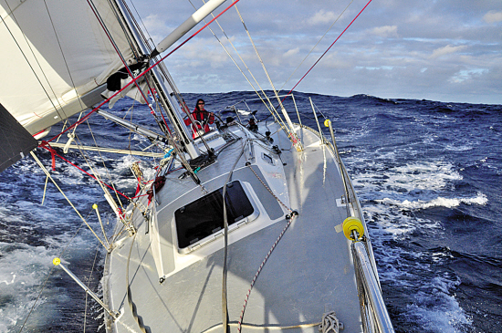 一阵恐惧向王云袭来——风太大,她根本掌不了舵。此时她的一只脚已经被海水淹没,如果没有系安全绳,她早就被吹进大海喂鱼了。整个船被吹得与海平面成45度角,后来甚至成了60度角。