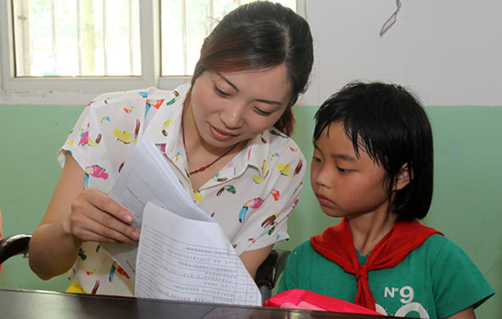 “爱心妈妈”志愿者与留守儿童亲切地交流