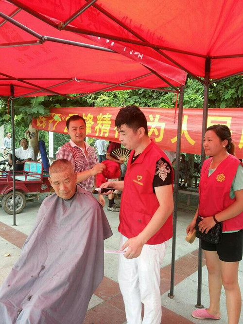 熟悉王少林的人都知道,他还有一个习惯,只要一有时间,他就会带着米、食用油及数百元的现金去敬老院看望老人。每当王少林看见这些老人的头发很脏又很乱时,他就为这些老人理理发!通过几次理发他感觉到,虽说这些老人不是多好看,但理后也有模有样了。就这样,王少林和志愿者同伴们一直坚持着这个“公益大计”。“一年下来,他们平均每月免费理发50余人”,聊起社区里的老人,王少林如数家珍。而慈善的老人们也给他送了个“爱心剪刀哥”的绰号。身边的同伴都说不清楚王会长给多少位老人、儿童理过发。