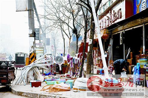 本报讯 将招牌、货物堆放在人行道上,一些商户在快车道上经营。昨天上午,记者在市十三香路看到,那里的占道经营现象严重。一名商户说,他在这里好多年了,这一片就是他的地方了。
