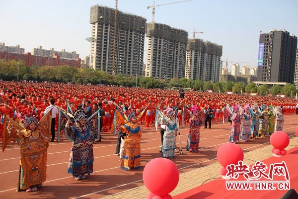万名市民齐聚挑战赛现场,共同见证挑战吉尼斯世界纪录荣誉最多人同时表演豫剧吉尼斯纪录的诞生。学生们慷慨高亢的唱腔里融入了悠扬悦耳的明丽欢快,更有资深豫剧演员在台前领唱,让现场观众耳目一新的同时,也感受到了豫剧的铿锵有力以及豫剧博大精深的魅力。