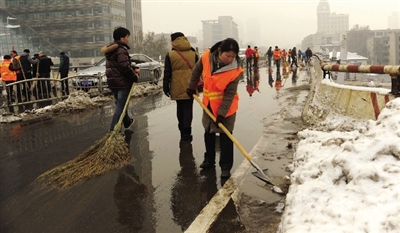 从4日开始,我市出现连续降雪。4日20时至昨日早上8时降雪量已达到16毫米。为了保证我市道路的畅通和市民的出行安全,市政府办公厅6日发出除雪紧急通知,全市各县市区昨日上午迅速组织力量,加大清除冰雪的力度。