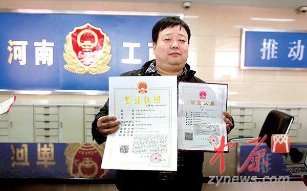 上午9时52分,在郑州市工商局行政办事大厅,河南煤炭建设集团有限责任公司获得第一张新版营业执照。该公司证照管理办公室主任李爱玲介绍,新制度实施后比原来的简洁高效多了,“实缴改任缴,降低了门槛,降低创业成本,对新成立的企业很优惠,以前企业年检,需要准备大量的材料,到市局审核。现在实行年度报告制度,节省了大量人力物力,年度报告制度结果还要向社会公示,提高了公信度,加强 了企业的自我约束。”