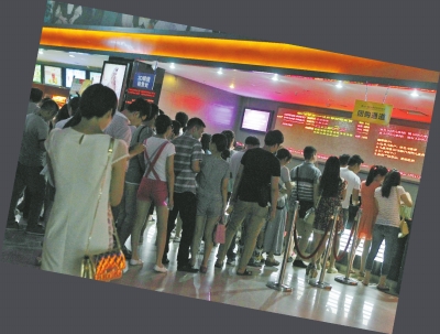 7月1日上午9点半,郑州某影院,由于暑期档加《变形金刚4》的双重刺激,购票处已排起了长队,但工作人员显然没有预估到会出现这种状况,4个售票窗口只开了1个,一位售票人员面对人头攒动的队伍,有些手忙脚乱。