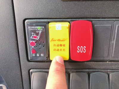 在郑州最新引进的新型公交车上,记者看到,驾驶室操控台上有一个黄色按钮,显示是“自动爆玻启动开关”。