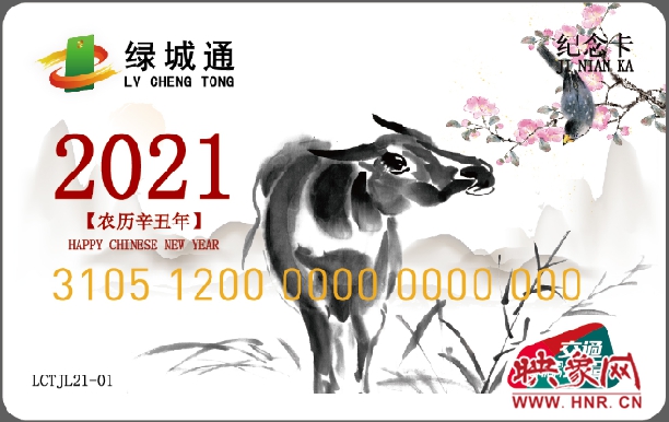 绿柳摇风燕织锦,红桃沐雨牛耕春。“绿城通”农历辛丑牛年生肖纪念卡以水墨牛代表力量与勤勉的精神,寓意着“金牛献瑞”、“牛到吉祥”。