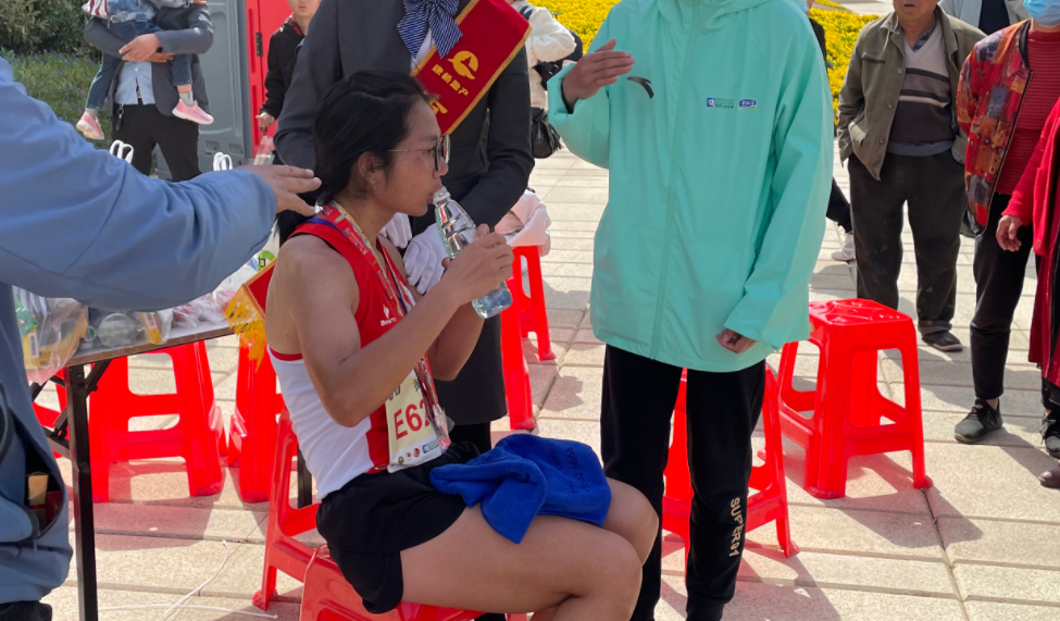 来自厦门的E62532号选手黄雪梅是2021年郑开马拉松第一名半程冲线的女选手,成绩是1小时26分51秒(成绩以裁判组最终确认为准),黄雪梅告诉大象新闻记者,她今年28岁,“还不错,这是我第二次第一名,之前最好成绩是1小时19分钟41秒!”