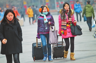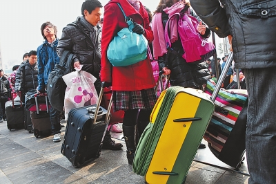 2月16日,在郑州火车站,越来越多的新生代务工人员,他们出行的行李更多是拉杆箱、电脑包或时尚挎包,而智能手机、平板电脑也已成为他们中不少人的“出行标配”。⑤3