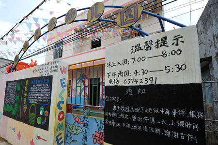 5月28日,海口市演丰镇艺丰幼儿园食物中毒部分学生在海口市人民医院进行观察治疗。据了解,艺丰幼儿园是一家私立幼儿园,该园共有学生198名,27日下午陆续有部分学生出现腹泻呕吐症状,截至28日凌晨,共有109名幼儿接受检查,其中69人确认为食物中毒 。 事件发生后,海口市及时安排转移学生前往市人民医院等六家医院进行观察治疗。目前绝大多数幼儿症状轻微,经诊治已有部分学生回家,对个别症状明显的留院患儿,医院正在组织专业力量密切观察,积极治疗。海口市疾控中心正就该事故原因进行流行病学调查,该市食药监局已对食物进行封存并抽样送检。