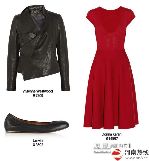 帕丽斯-希尔顿红色连身裙+黑色皮衣,高跟鞋配长方形手袋,名媛范儿十足。