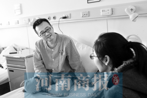 同事来看望耿斌,病床上的他精神状态显然还不错 河南商报记者 唐韬/摄