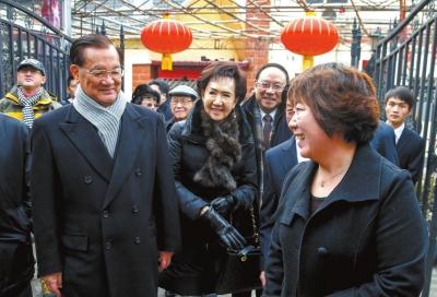 昨天,连战和夫人在北京平谷区挂甲峪村参观访问,到一户农家做客。