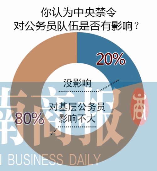 接下来的2014年,公务员所面临的“禁令”也有增无减。“这些禁令,对一些单位的影响确实很大。”一省直单位公务员在与朋友抱怨时说,这些规定与禁令出现前,算上各种补贴与奖金,自己每个月大概有6000元的收入。但现在,所有的补贴都没有了,每个月只剩下不到3000元的死工资。
