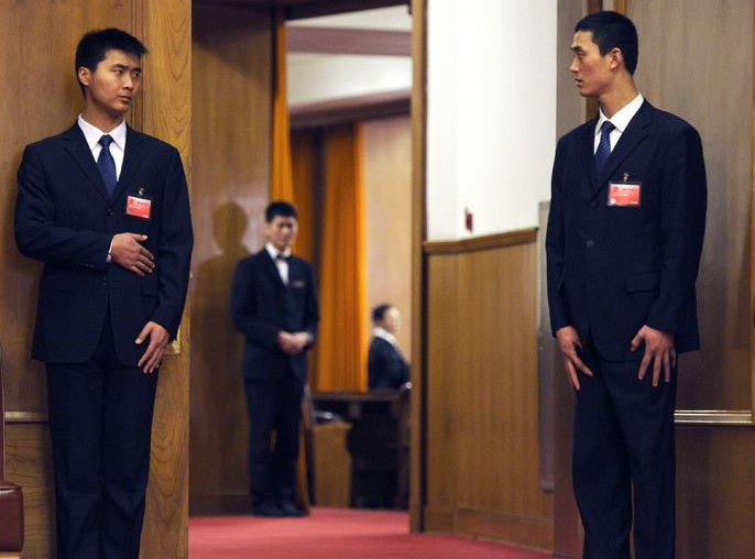 人民大会堂内最神秘的黑衣人,他们从不走动,动的只有目光。