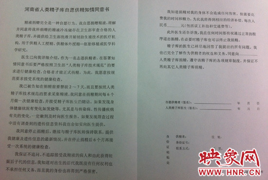 郑州市民王先生拿着已经签好字的知情同意书说:“我是上月确认捐精的,这是第二次来体检了,如果合格应该就开始正式捐精了。”