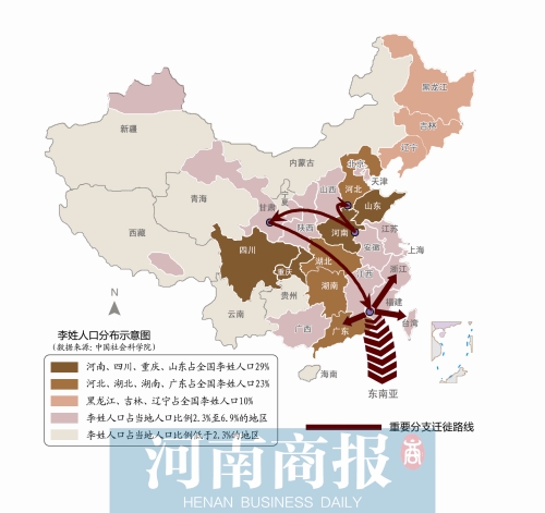 我国李姓人口多达9500余万,为中国第一大姓,约占全国人口的7.9%。