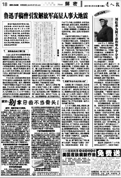本文摘自《老人报》2014年3月5日18版,作者:佚名,原题为《刘伯承为何主动和邓小平分手》