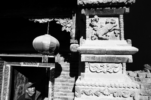 这3座门楼最吸引人的,是保存完整的砖雕:镂空的麒麟、飞舞的凤凰腾云驾雾,惟妙惟肖,各种吉祥花饰、福寿字刻,工艺精美。门楼上的木雕,图案以花卉为主,保存完整,工艺也可圈可点(如上图)。