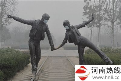 东风渠上的情侣雕塑也被人戴上了口罩。