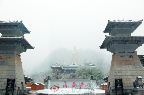 雪后,栾川老君山上的老子雕像也披上了银装。 记者 化雅楠 通讯员 王锦钰 摄影