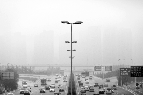 1月14日,金水东路,建筑在雾霾中若隐若现 河南商报记者 侯建勋/摄