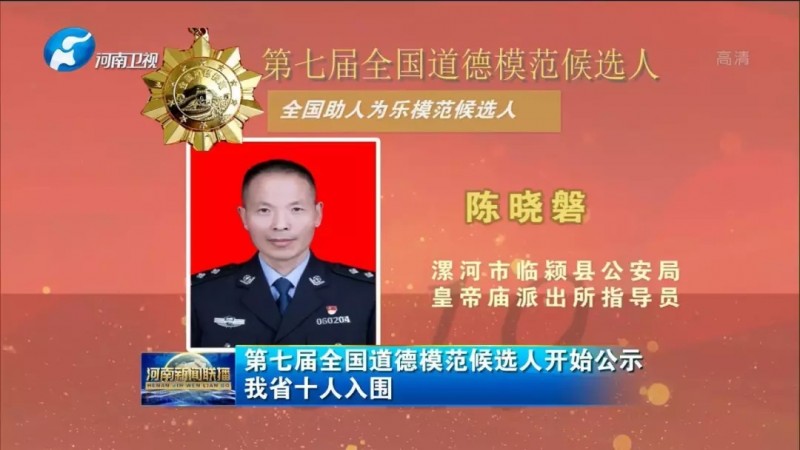 汝州市金庚康复医院 党支部书记、院长宋兆普 漯河市临颍县公安局皇帝庙派出所 指导员陈晓磐 全国见义勇为模范 候选人 为保护学生英勇牺牲的 信阳市浉河区董家河镇绿之风希望小学教师李芳 郑州市红十字水上义务救援队 队长牛振西 林州市红旗渠应急救援中心 理事长杨永峰 全国诚实守信模范 候选人 新乡市洪门街道诚城社区党委书记、 河南诚城集团党委书记邓志军 开封市祥符区电影公司 党支部书记、经理郭建华 全国敬业奉献模范 候选人 南阳市镇平县高丘镇黑虎庙小学 校长张玉滚 全国孝老爱亲模范 候选人 周口市太康县常营镇五子李村 村民赵志发 濮阳市人民医院产科 主任韦德华 全国评选表彰活动组委会还公布了联系方式(电子邮箱:qgddmfpx2019@163.com,电话:010—83083179),听取社会各界的评议和监督意见。公示结束后,全国评选表彰活动组委会将组织公众代表和评委会投票,确定表彰名单。