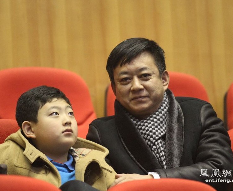 2013年12月24日,北京,羽泉“人生就是一场运动会” 圣诞演唱会在工人体育馆落下帷幕。央视主播朱军带着11岁的儿子前来捧场,看到记者后大方面对镜头。文/李雪薇 图/卡卡西