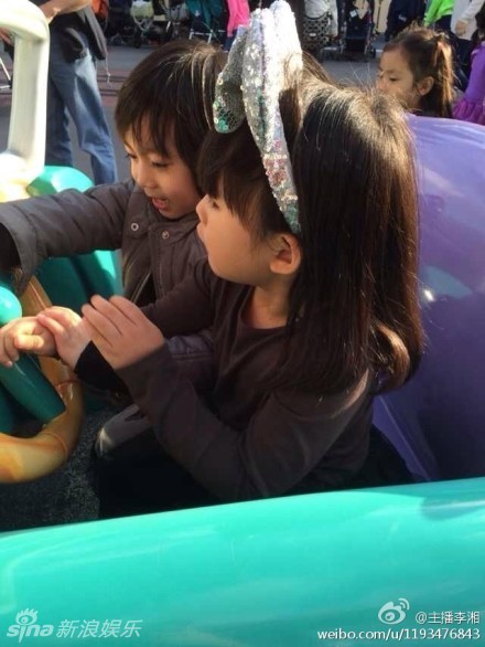 8日下午,李湘在微博晒出一组女儿王诗龄和Kimi在迪士尼游玩的照片,两个小伙伴一起玩泡泡开小车,网友大呼“青梅竹马!”